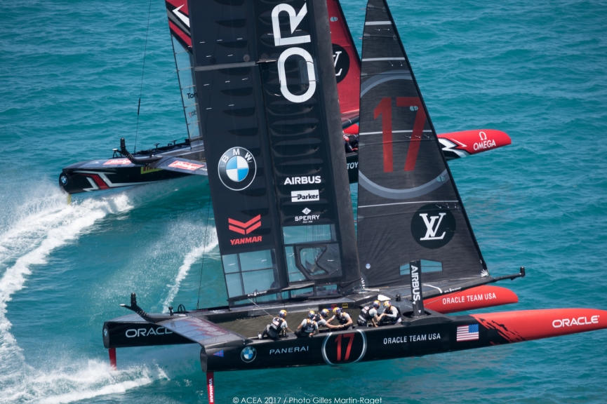 With Jimmy Spithill’s ORACLE TEAM USA winning the sixth race of the America’s Cup Match on Bermuda’s Great Sound on Saturday to get its first point on the scoreboard, anticipation was heightened for close racing on Sunday.